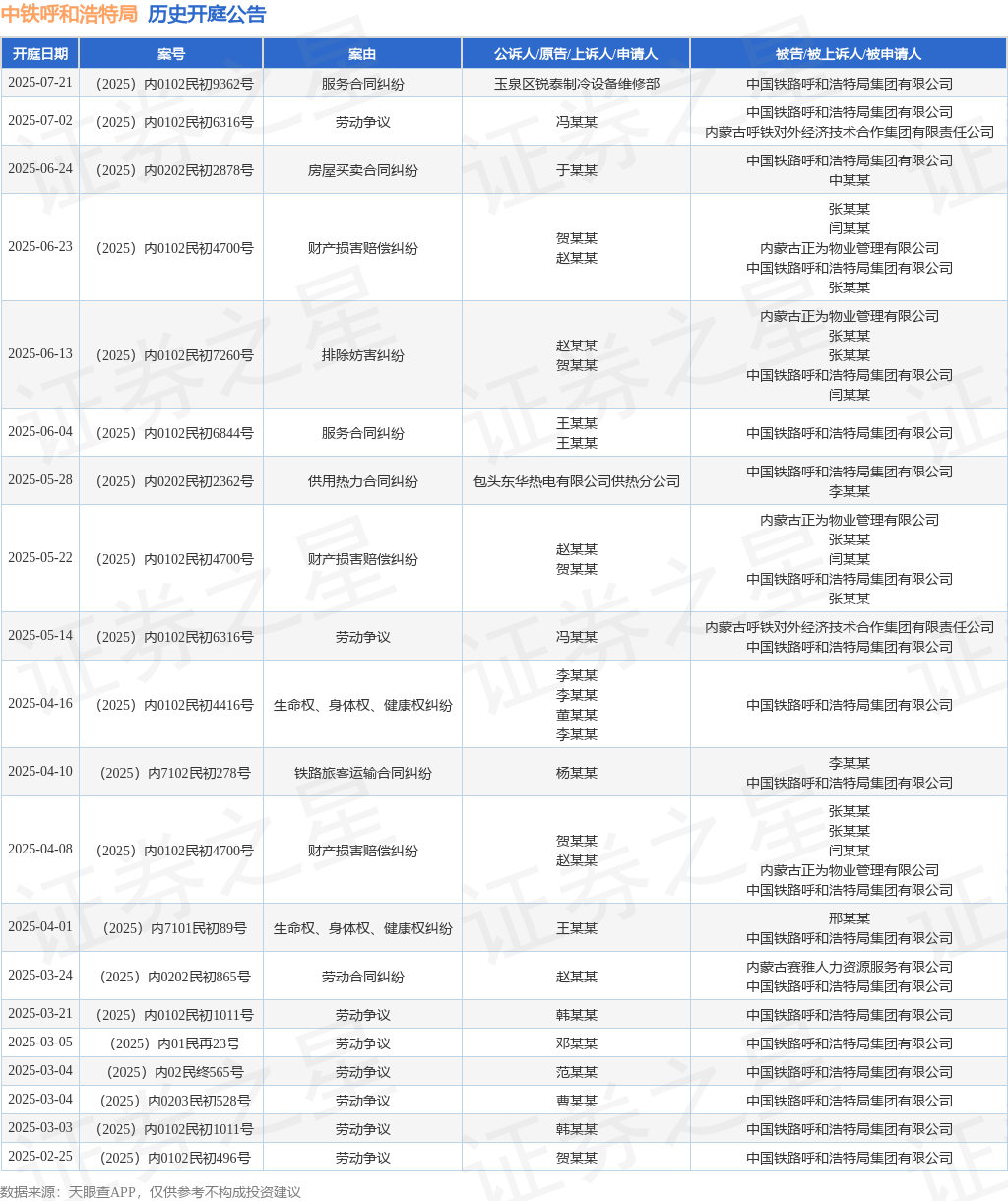 本站消息牛达人牛达人,根据天眼查APP显示,近日公布了一则中国铁路呼和浩特局集团有限公司作为被告/被上诉人的开庭公告,详细内容如下: