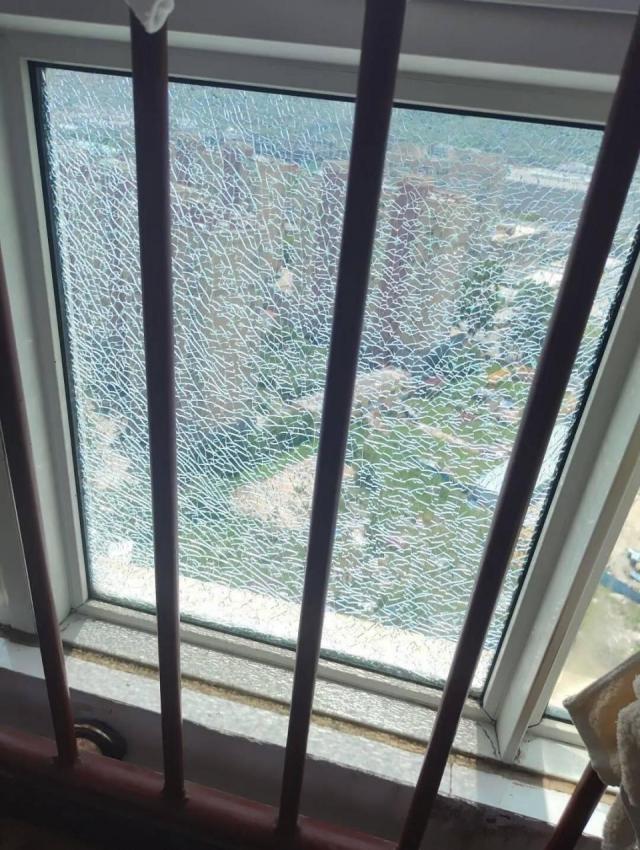 就在 13 日下午,三门峡的李女士也遇到了类似的情况。当天下班回家时,她发现家中面向西南的一扇玻璃裂了——"热炸了"。