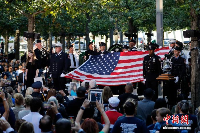 中新社纽约9月11日电 (记者 王帆)当地时间11日,数千人聚集在美国纽约世贸中心遗址广场,悼念24年前“9·11”恐怖袭击事件中的遇难者。