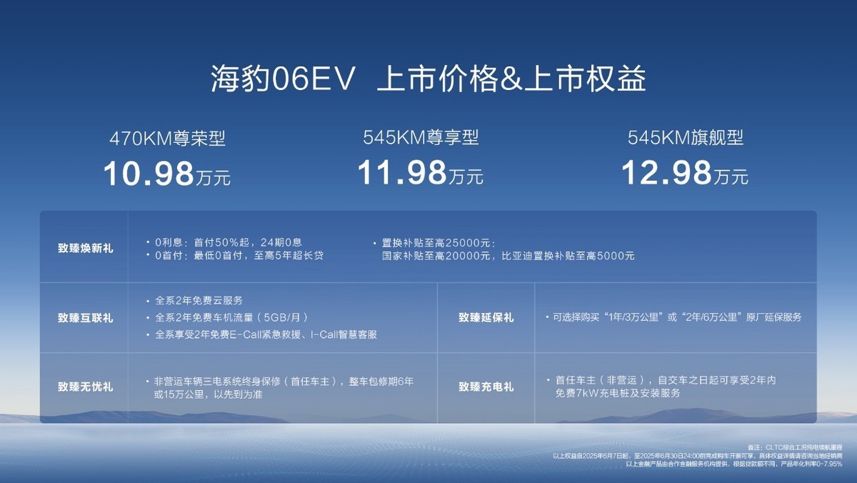 作为海洋网全新家用纯电轿跑,海豹06EV以颜值、驾乘、品质、安全优势全面领先同级,成为年轻家庭用户主流纯电轿跑最优选。目前新车已到店,有购车需求的用户可通过比亚迪海洋APP或前往授权门店了解试驾。