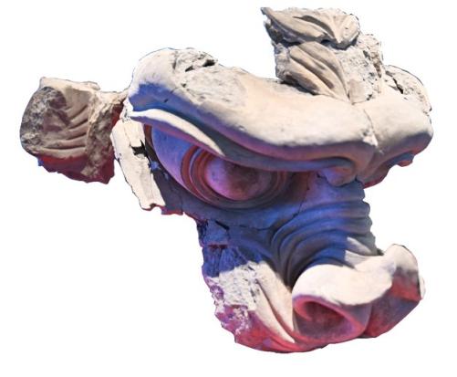经过研究,两件龙首都有不为人知的一面。首先两件龙首在当时制作完成后并非现在这般“灰头土脸”,在龙首面部发现了朱砂、铜、铅等残留,说明龙首在制作完成时应是通体洁白,并且拥有黑色的眼球、绿色的眼线和红色的眼影。其次,经过扫描10号龙首发现,龙首内部有块状物,说明制作时应是先用陶土、秸秆等混合材料制坯,后手工捏制。“10号龙首的左侧上颌、左侧下颌等处都发现了陶工的指纹,这是证明制作过程的有力证据。”讲解员说。