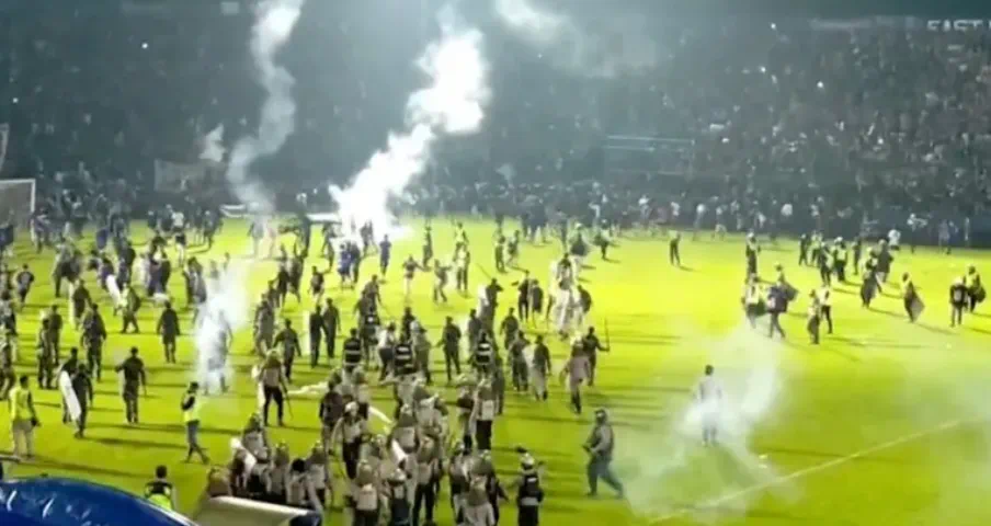 2022年10月1日,印度尼西亚东爪哇省,印尼阿雷马足球俱乐部主场以2比3不敌佩尔塞巴亚足球俱乐部,比赛结束后,双方球迷发生了激烈冲突。当时,失利球队的球迷闯入球场,双方球队的球迷在场内发生争吵和打斗,警方随后发射催泪瓦斯,人群在混乱中发生踩踏,最终导致135人死亡。